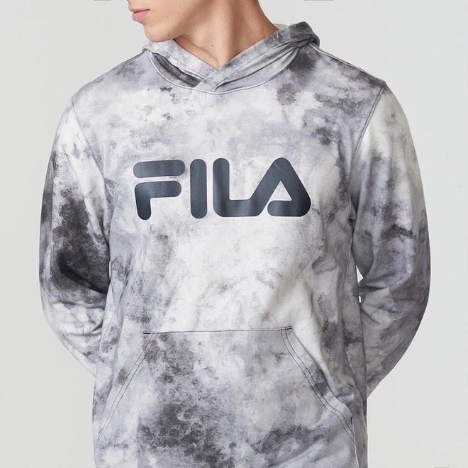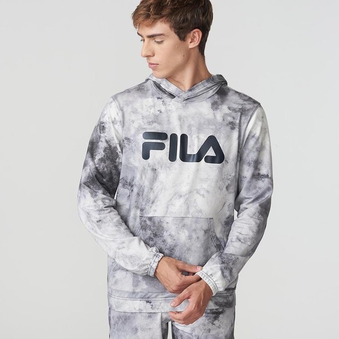 Possui bolso canguru frontal, detalhe decorativo em ?V? pespontado e travetado abaixo da gola, punhos e barra em ribana, estampa maxi Fila Letter em silk sustentável centralizado na parte frontal superior e acabamento de pesponto nas cavas, ombros e gola.