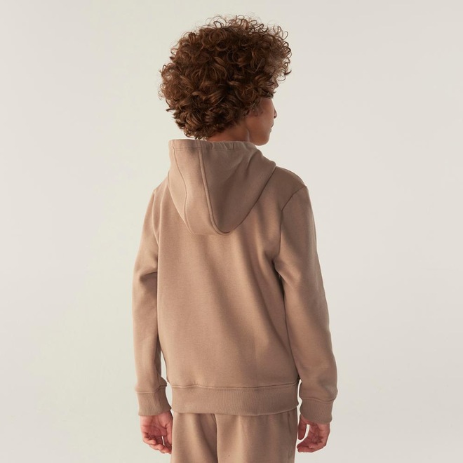 Consciência e Sustentabilidade: A jaqueta é feita em moletom de algodão felpado com a certificação BCI (Better Cotton Initiative), garantindo uma produção mais sustentável e responsável da matéria-prima.