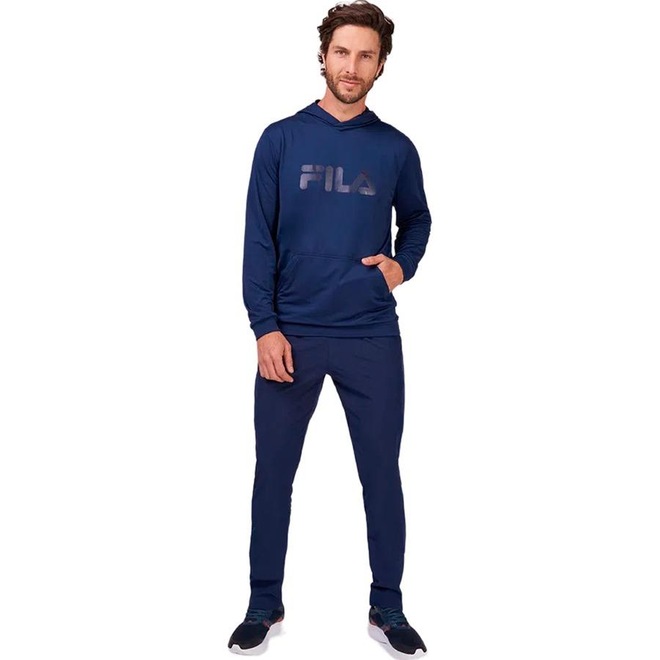 Casaco com capuz transpassado e bolso canguru confeccionado em tecido tipo moletinho, sem felpa, em fibra de poliéster com elastano. Modelo institucional. Acabamento pespontado nas cavas e decote. Gráfico frontal Fila Letter em surton correspondente a cada variante. Punhos e barra em ribana de poliéster com elastano com efeito canelado. Bolsos frontais tipo canguru para armazenamento de objetos e também para maior proteção em dias mais frios. Ideal para praticar atividades em dias mais frios mas pode ser usado também no dia a dia de quem possui um estilo mais esportivo e não deixa de lado o conforto do produto.