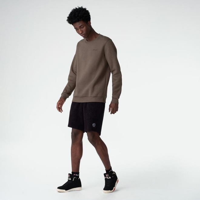 Casaco masculino confeccionado em moletom felpado de algodão e poliéster. Modelagem regular com gola careca pespontada em ribana e manga longa. Possui punhos e barra em ribana, ombro e cavas com acabamento pespontado, cobre gola institucional e logo Fila Letter bordado na parte frontal esquerda superior.