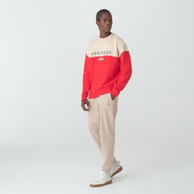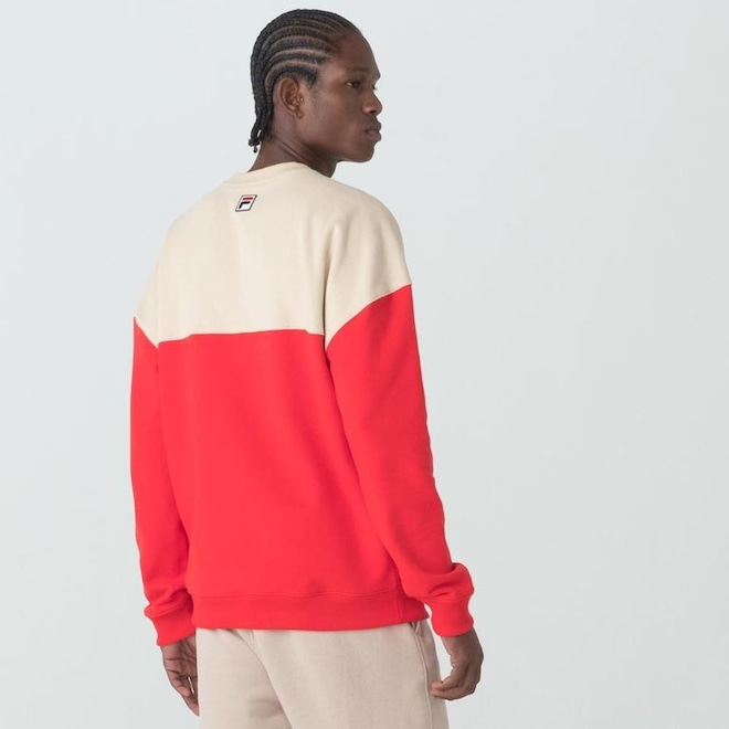 Casaco unissex confeccionado em moletom felpado de algodão sustentável e poliéster com toque de camurça. Modelagem oversized com gola careca em ribana e manga longa. Produto ecológico, com selo BCI (Better Cotton Initiative), elaborado para causar menos impacto ao meio ambiente, colaborando com a sustentabilidade do planeta. Possui punhos e barra em ribana, cavas deslocadas com acabamento pespontado, recorte superior contrastante pespontado, estampa Heritage Fila Letter centralizada na parte frontal e patch F-Box centralizado na parte traseira próximo à gola. ,