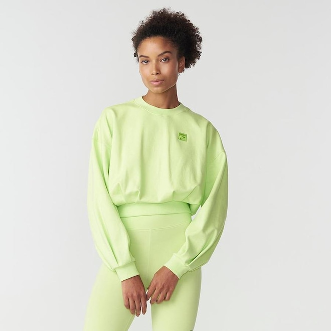 Casaco cropped feminino confeccionado em malha estruturada de algodão e elastano com toque macio. Modelagem comfort, mais solta no corpo, com manga longa e gola careca em ribana. Possui ombros deslocados, punhos e barra em ribana, patch F-Box aplicado na parte frontal esquerda superior e maxi logo F-Box em relevo no próprio tecido centralizado na parte traseira superior.ref: M0ZY5C
