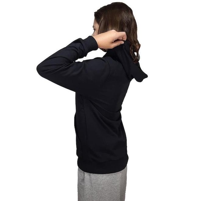 Produto ecológico com selo BCI (Better Cotton Initiative) e certificado Oeko-Tex, que testifica o não uso de químicos nocivos na sua fabricação.Modelo: Casaco Moletom Basic Com Capuz;