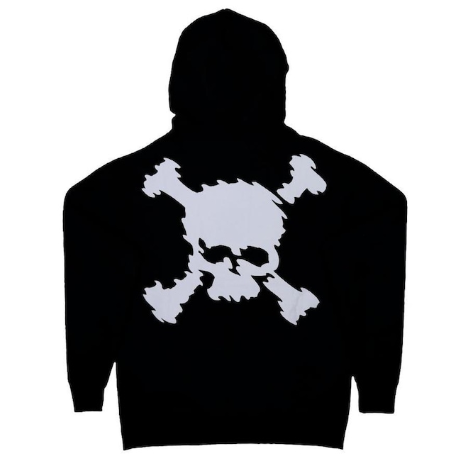 Modelo coleção exclusiva remete ao DNA da marca, tom logo caveira grande nas costas