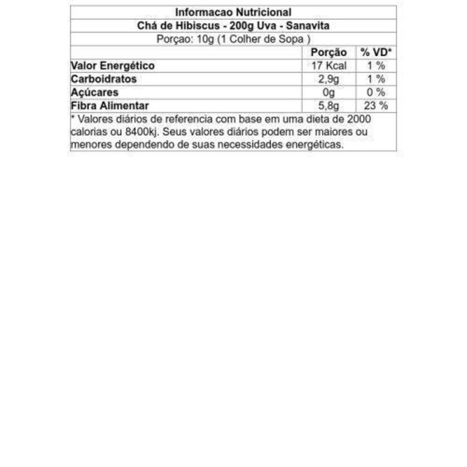Chá de Hibiscus Sanavita - Uva - 200g.