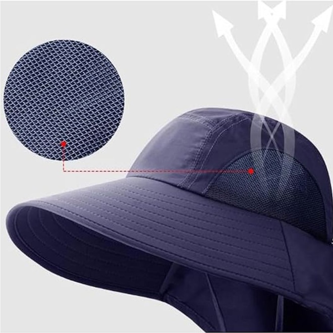 Aba larga – proporciona proteção contra sol forte, vento e até chuva leve.