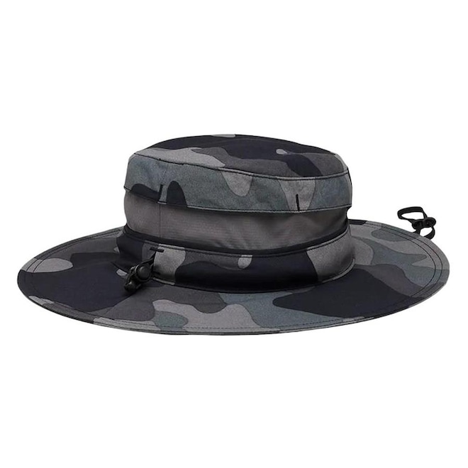 O Chapéu Bora Bora Booney Printed da Columbia é perfeito para montanhistas e praticantes de esportes, sendo uma ótima opção para quem procura um equipamento para se proteger do sol. Logo, já percebemos um chapéu super leve, com abas largas, que protegem uma maior área do rosto e sua composição, por possuir fator de proteção FPS 50, garante que estaremos livres de queimaduras em toda a região da cabeça. Nas laterais do chapéu, um tecido aerado garante a máxima liberdade de transpiração. Além disso, seu material possui a tecnologia Omni-Wick, que consiste num processo que auxilia na evaporação do suor, facilitando sua secagem, mesmo durante as noites. E para garantir que o vento não o leve, um cordão com clip plástico para ajuste.