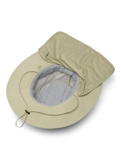 Seu design conta com aba de 8,8 cm, que protege o rosto e o pescoço do sol, além de uma aba protetora de nuca dobrável, proporcionando ainda mais segurança contra os raios UV.