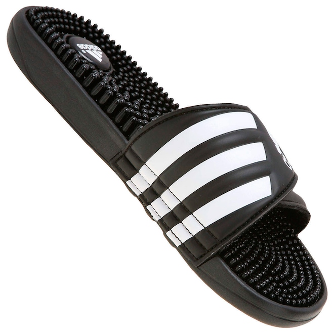 O Chinelo adidas Adissage foi especialmente projetado para oferecer o que há de melhor para o descanso dos pés. Sua palmilha é em TR (borracha termoplástica) com pinos massageadores que estimulam a circulação sanguínea. A tira do Chinelo Slide é regulável em velcro para um ajuste mais personalizado. Além disto, o solado é em EVA injetado com a proteção da tecnologia non-marking que oferece maior tração. O Chinelo adidas é ótima opção de relaxamento no conforto de casa, praia e piscina. Não perca a chance, aproveite o preço e compre o seu!
