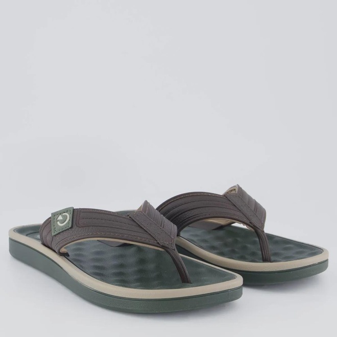 Composição tira: Material sintético Cor predominante: Marrom Tira: Divisora de dedos Solado: 100% borracha Indicado para: Casual Composição: Borracha Gênero: Masculino Origem: Nacional Peso aproximado: 450g o par n° 40