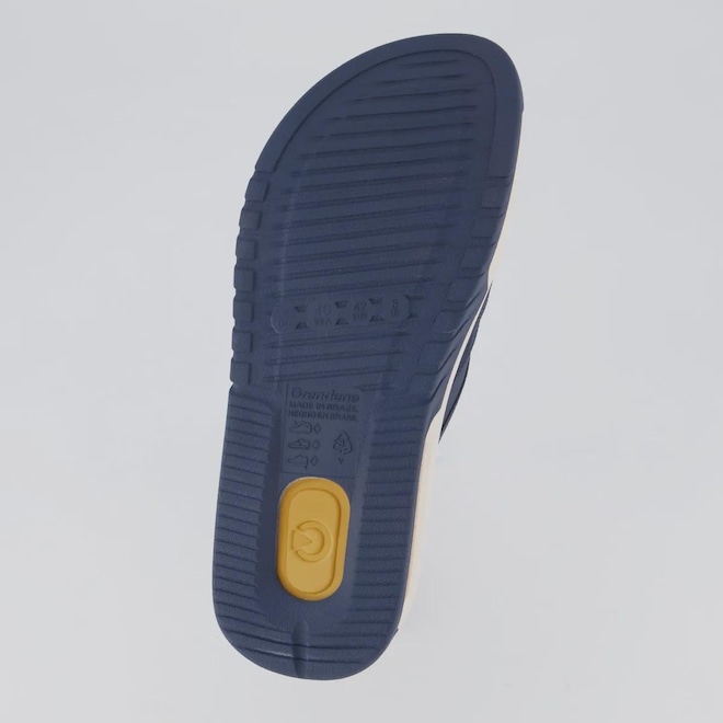 Composição tira: Material sintético Cor predominante: Azul Tira: Divisora de dedos Solado: 100% borracha Indicado para: Casual Composição: Borracha Gênero: Masculino Origem: Nacional Peso aproximado: 610g o par n° 40