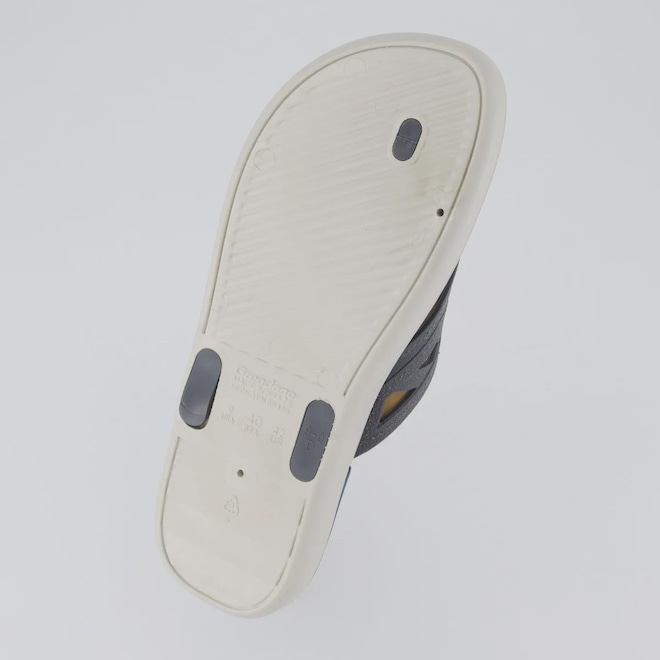 Composição tira: Material sintético Cor predominante: Azul Tira: Divisora de dedos Solado: 100% borracha Indicado para: Casual Composição: Borracha Gênero: Masculino Origem: Nacional Peso aproximado: 500g o par n° 40