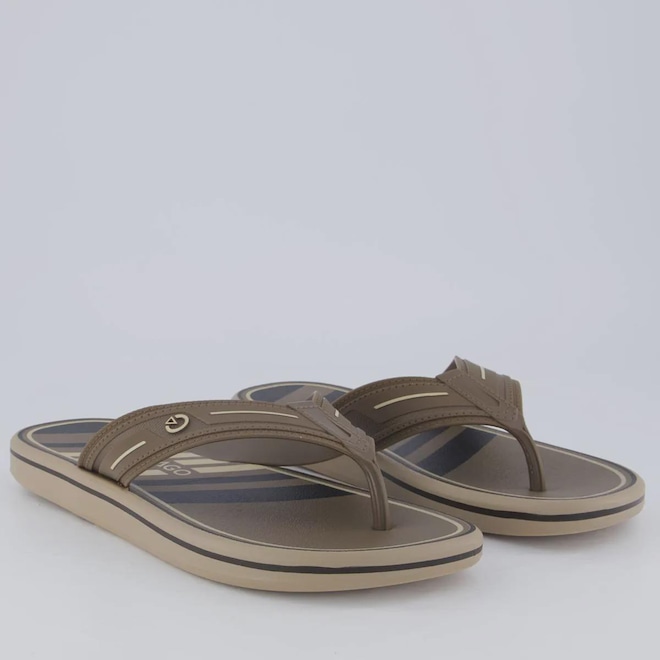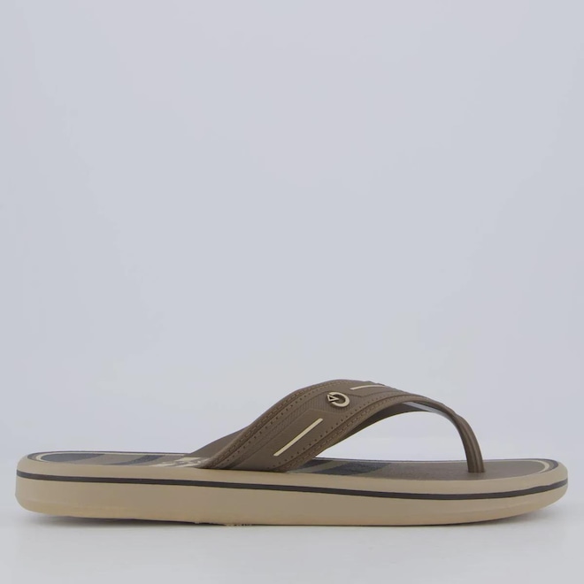 Composição tira: Material sintético Cor predominante: Marrom Tira: Divisora de dedos Solado: 100% borracha Indicado para: Casual Composição: Borracha Gênero: Masculino Origem: Nacional Peso aproximado: 410g o par n° 40