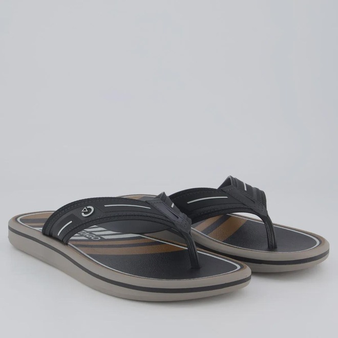 Composição tira: Material sintético Cor predominante: Cinza Tira: Divisora de dedos Solado: 100% borracha Indicado para: Casual Composição: Borracha Gênero: Masculino Origem: Nacional Peso aproximado: 490g o par n° 40