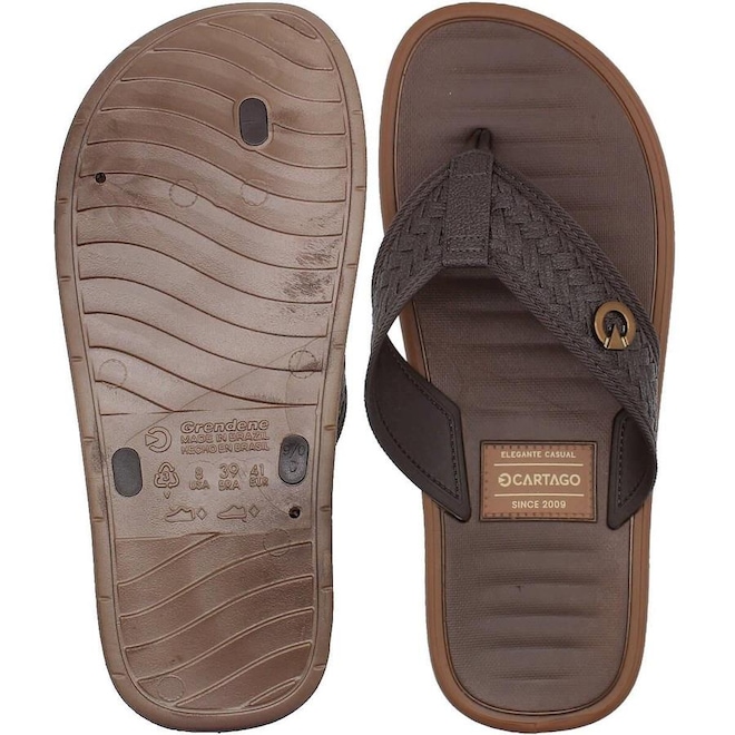 Chinelo de Dedo Cartago Coimbra Masculino O Chinelo de Dedo Cartago Coimbra Masculino é uma peça de calçado que se destaca pela perfeita fusão entre estilo, durabilidade e conforto. Seu design meticulosamente elaborado apresenta um cabedal intricado, confeccionado em PVC, composto por tramas elaboradas que conferem um toque de sofisticação. O acréscimo de um pin metálico eleva o modelo, proporcionando uma elegância adicional. A palmilha desse chinelo é feita em EVA, garantindo conforto extra aos pés. A sola, confeccionada com material emborrachado, é cuidadosamente elaborada, destacando-se pelos detalhes de cor que não apenas adicionam estilo, mas também acrescentam personalidade ao calçado. Cada elemento, desde o cabedal até a sola, é pensado para proporcionar não apenas uma experiência estética refinada, mas também garantir resistência e conforto ao usuário. Informações:Ideal para: dia a dia.Cabedal: tiras em PVC.Palmilha: em EVA com textura.Solado: em borracha antiderrapante.Peso: 273g aproximadamente - número 39. O peso varia de acordo com a numeração. Garantia do fabricante: 90 dias contra defeito de fabricação.ref: M1318L