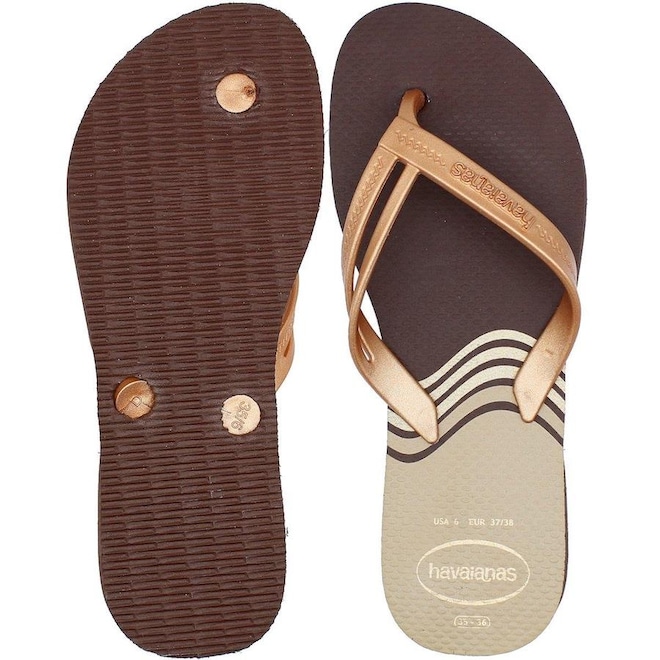 Chinelo de Dedo Havaianas Feminino Elegance Print Procurando um chinelo que mistura simplicidade e luxo? O Chinelo de Dedo Havaianas Feminino Elegance Print é a fusão perfeita. Este modelo oferece todo o conforto característico da Havaianas, combinado com um design sofisticado que eleva qualquer look. As tiras lisas metalizadas, adornadas com um elegante filete vazado em um dos lados, conferem um toque de modernidade e classe. A palmilha estampada adiciona um charme extra, tornando este chinelo ideal para diversas ocasiões, desde um dia casual até um evento mais descontraído. Confeccionado em borracha de alta qualidade, o Havaianas Elegance Print garante durabilidade e conforto, enquanto a sola texturizada proporciona ótima aderência. Informações:Ideal para: dia a dia.Cabedal: em borracha. Palmilha: em borracha macia.Solado: em borracha com frisos antiderrapantes. Peso: 109g aproximadamente - número 35/36. O peso varia de acordo com a numeração. Garantia do Fabricante: 90 dias contra defeito de fabricação.ref: M1549V