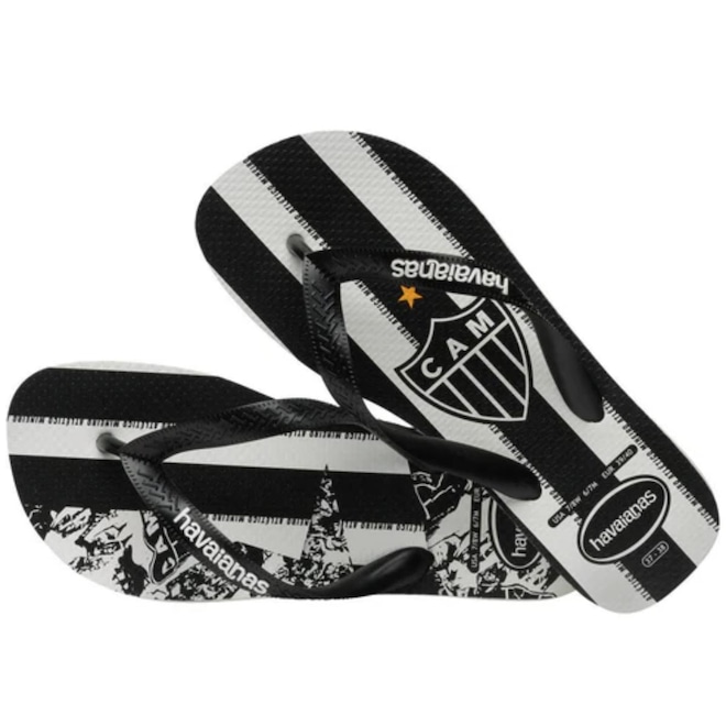 Para os apaixonados pelo Galo, essa Havaianas é feita sob medida! Mantendo o formato super confortável da linha Top, o chinelo se inspira na camisa do time e exalta a torcida, misturando as famosas listras e fotos históricas.