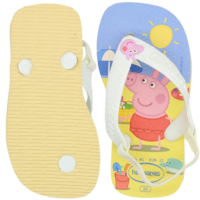 Para os pequenos que estão dando os primeiros passos, a Sandália De Dedo Havaianas Baby Peppa Pig é a escolha ideal. Mantendo a alta qualidade característica da Havaianas, esta sandália possui um elástico na parte traseira, oferecendo segurança e firmeza aos pezinhos dos bebês. Lúdica, confortável e especialmente desenvolvida para os pequeninos, esta sandália é perfeita para proporcionar momentos de diversão e conforto. Não deixe de escolher a estampa favorita para o seu bebê!