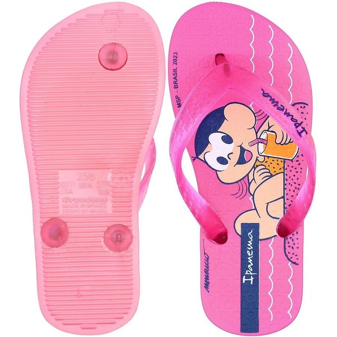 Chinelo de Dedo Infantil Ipanema Menina Este chinelo é perfeito para as pequenas fãs da turminha mais querida do Brasil, proporcionando conforto e diversão em cada passo. Palmilha macia com estampa dos personagens adoráveis da Turma da Mônica, trazendo alegria e cor para o dia a dia das crianças. A sola antiderrapante garantem conforto e segurança para os pequenos pés. Fabricado em PVC, oferecendo durabilidade e resistência para acompanhar todas as brincadeiras.Deixe sua pequena explorar o mundo com a companhia dos personagens. Informações: Ideal para: dia a dia e passeio. Material: em PVCCabedal: emborrachado.Palmilha: estampado.Solado: borracha com antiderrapante. Peso: 84g aproximadamente - número 25/26. O peso varia de acordo com a numeração. Garantia do fabricante: 90 dias contra defeito de fabricação.ref: M156U1