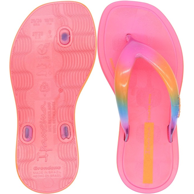 O Chinelo De Dedo Infantil Ipanema Glow Trend Menina combina estilo moderno, conforto e durabilidade para meninas que buscam praticidade no dia a dia. Com design exclusivo, solado anatômico e tiras com acabamento liso , este chinelo destaca sua personalidade em qualquer ocasião, seja na praia, piscina ou no cotidiano urbano. Produzido em material sintético, oferece leveza, resistência e secagem rápida, atributos essenciais para quem não abre mão de bem-estar e durabilidade. A marca Ipanema é reconhecida por sua qualidade e tecnologia, sendo referência no segmento. Escolha o Chinelo Ipanema Glow Trend e experimente o equilíbrio perfeito entre conforto, beleza e atitude! Informações: Ideal para: dia a dia, passeios, praia, uso casualCabedal: em material sintético com friso metalizado na tiraPalmilha: anatômica para máximo confortoSolado: em borracha com frisos antiderrapantesPeso: 101g aproximadamente - número 25. o peso varia de acordo com a numeraçãoGarantia do fabricante: 90 dias contra defeito de fabricação