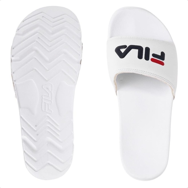 A tira única, com o logo da Fila em destaque, garante um ajuste perfeito aos pés.
