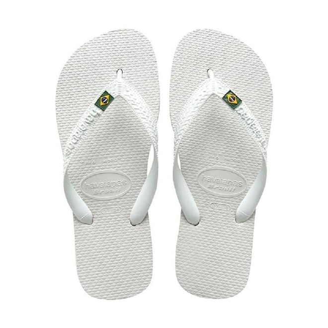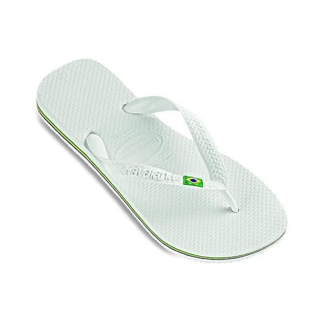 Chinelos feitos de solas de borracha flexíveis, resistentes e macias, apresenta cores vivas com um logotipo de baixo relevo destacado e bandeira do Brasil nas tiras.