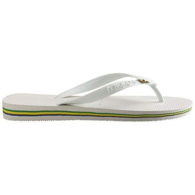 Com uma pequena bandeira do Brasil na tira e o na sola. Essa sandália logo se tornou um objeto de desejo no exterior e motivo de orgulho para os brasileiros.ref: M11V3H
