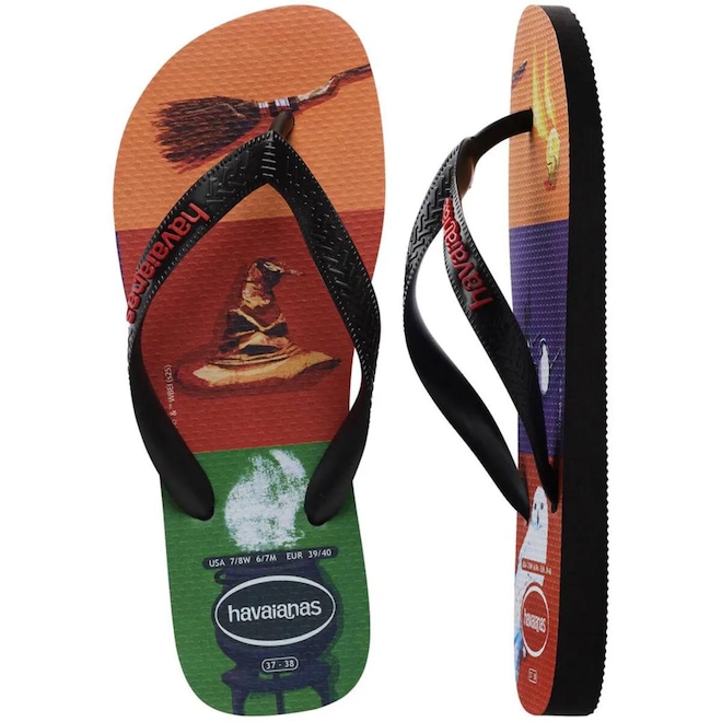 Feitas para os fãs do mundo bruxo, as Havaianas Harry Potter trazem elementos icônicos da saga, como o Chapéu Seletor, a vassoura e os óculos do Harry. Um modelo cheio de magia e nostalgia — ideal para encantar consumidores de todas as casas de Hogwarts!. Um chinelo poderoso! Lave à mão com sabão neutro e uma escova macia ou na máquina de lavar. Deixe secar em um local bem ventilado e... Prontinho! Suas Havaianas ficam novinhas em folha!