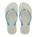 Amor nos detalhes e conforto a cada passo! Esse modelo das Havaianas traz um mix perfeito entre delicadeza e estilo com uma palmilha decorada por corações coloridos e tiras com glitter azul e pingente em forma de coração.