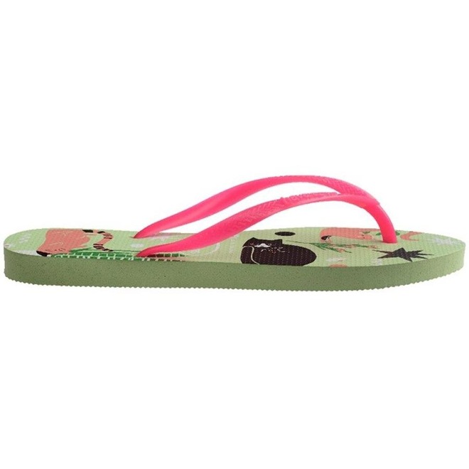 O Chinelo Havaianas Slim Pets Feminino traz todo o charme e estilo que seus pés precisam. Apresenta tira média + logomarca feitas 100% em PVC de alta qualidade. O corpo do chinelo é feito totalmente em material emborrachado, apresentando frisos antiderrapantes na palmilha e na sola para mais segurança no caminhar. O destaque fica por conta da estampa única nos dois pés. Perfeito pra você! Guarde seu calçado em local seco e bem ventilado evitando umidade, preferencialmente fora da caixa;Mantenha seu calçado longe de fontes de calor e evite expô-lo a altas temperaturas;Limpe seu calçado regularmente, especialmente depois de caminhar por lama e umidade.ref: M12Z7G