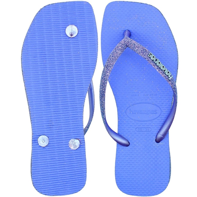 No modelo Havaianas Slim Square Sparkle, a sola tem bico quadrado, um estilo novo que deu super certo na Havaianas.
