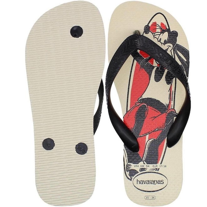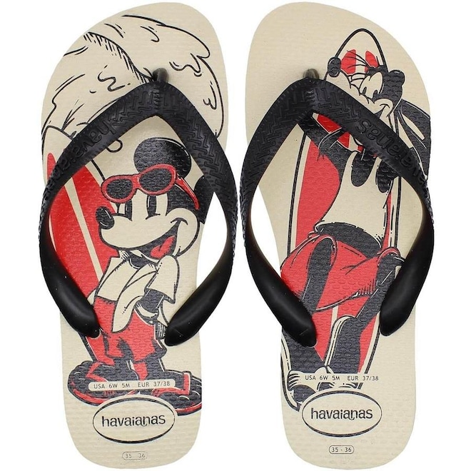 Chinelo Havaianas Top Disney Feminino O Chinelo Havaianas Top Disney Feminino é um modelo super prático e confortável. Possui tira em borracha com a logomarca da Havaianas em destaque e palmilha com estampas do personagem Mickey! Este chinelo combina com vários looks do dia a dia! Informações: Ideal para: dia a dia. Cabedal: em borracha. Palmilha: em borracha macia para maior conforto. Solado: borracha. Peso: 120g aproximadamente - número 35/36. O peso varia de acordo com a numeração. Garantia do Fabricante: 90 dias contra defeito de fabricação. Guia de medidas: 33/34 - 22,5cm 35/36 - 24cm 37/38 - 25,5cm 39/40 - 26,5cm 41/42 - 28cmref: M0HVQX