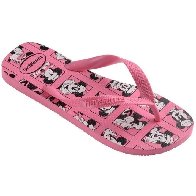Desenhos animados: O conceito divertido está presente nas cores espontâneas e nas estampas da Havaianas Top Disney com da Minnie em Rosa.