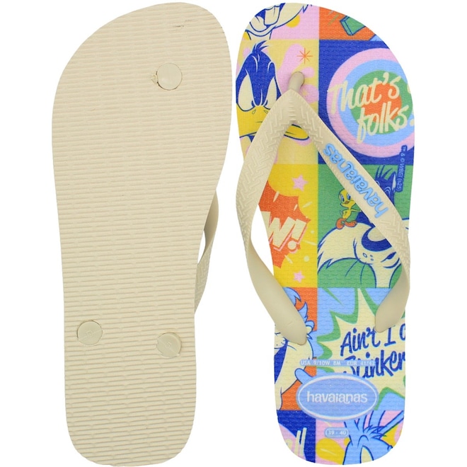O Chinelo de Dedo Havaianas Top Warner Masculino é a escolha perfeita para os fãs dos icônicos personagens da Warner Bros. Com um design divertido e cheio de personalidade, esse modelo une conforto, estilo e nostalgia em um só produto.Fabricado em borracha macia e resistente, ele proporciona um ajuste confortável aos pés e alta durabilidade. A estampa exclusiva traz personagens clássicos da Warner, garantindo um visual despojado e cheio de atitude. O solado antiderrapante oferece mais segurança e estabilidade ao caminhar, tornando-o ideal para o dia a dia.