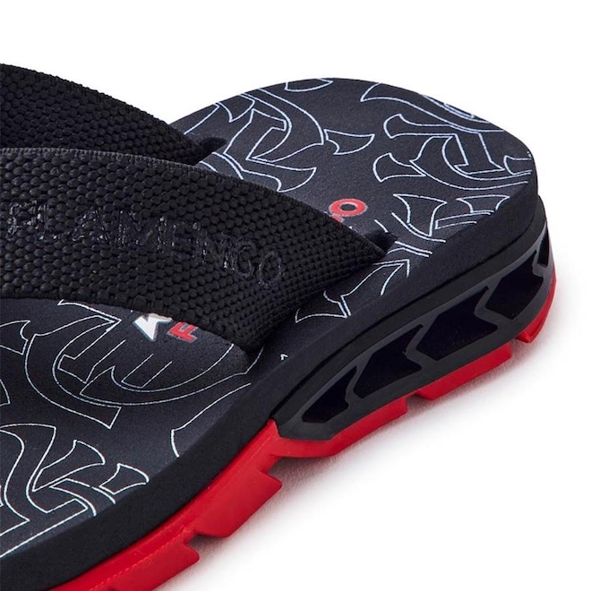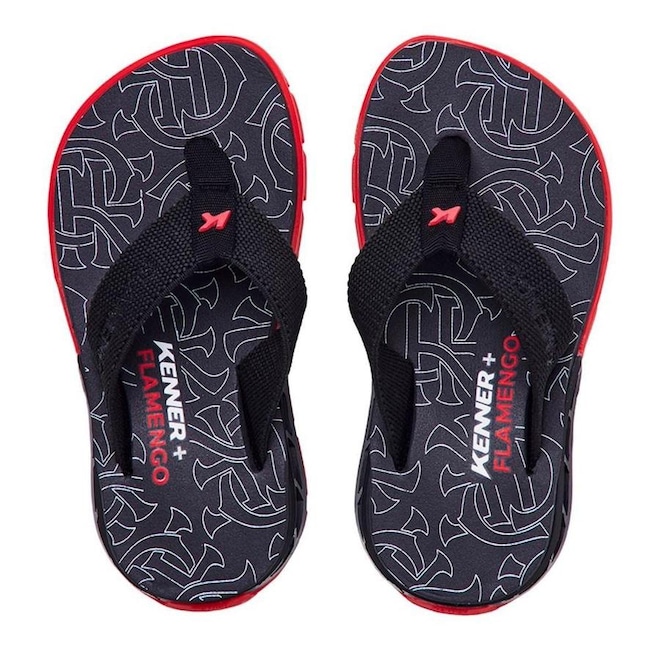 Chinelo Kenner Rakka para a criançada! Com design industrial e totalmente atual possui cabedal com trama elástica e baixo-relevo escrito Flamengo na cor , palmilha extramacia na cor com a sigla do time em , solado na cor e megatratorado de borracha vulcanizada.