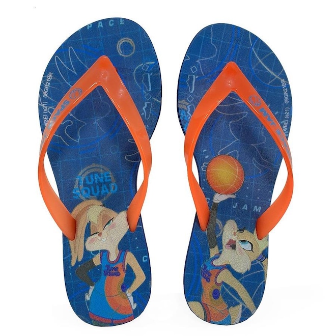 Um chinelo com a querida e charmosa Lola e o desejado Pop It, todo personalizado com a vibe, ícones e personagens de Space Jam!