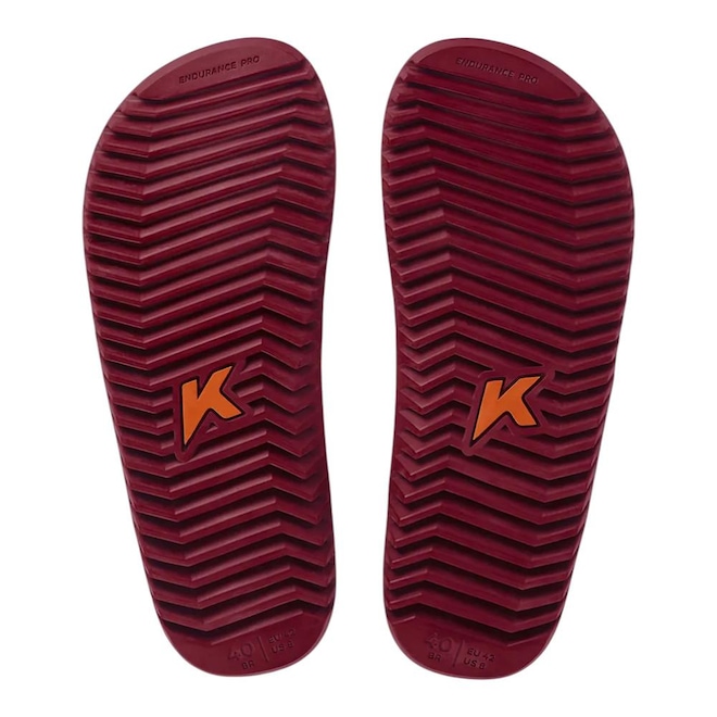 - Solado na cor bordô com design tratorado e antiderrapante em borracha vulcanizada