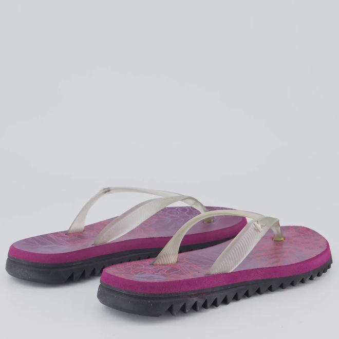 Tecnologia Endurance Pro: Solado supertratorado construido em borracha vulcanizada que promovendo mais segurança a cada passo Composição: EVA Origem: Nacional Gênero: Feminino Indicado para: Casual Cor predominante: Roxo Tira: Fina e divisora de dedos Solado: Borracha tratorada e antiderrapante Composição tira: Material sintético Peso aproximado: 410g o par n° 37