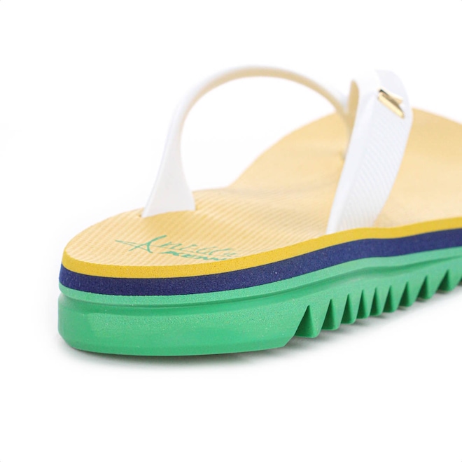 O estilo tropical que conquistou a patroa! Chinelo Kenner Ibiza Brasil Anitta Amarelo Verde e Azul - Feminino Ficha Técnica: Marca: Kenner Chinelo de dedo, exibe todo o pé Gênero: Feminino Cor: Amarelo com detalhes em verde, azul e branco Cabedal: Borracha maleável e resistente Palmilha: EVA macio, amarela com textura impermeável Entressola: Alta, na cor verde e azul Solado: Verde tratorado robusto, flexível e antiderrapante Tiras: De dedo Indicação: Dia a dia Detalhes específicos: Tiras slim, pin metálico K dourado e visual inspirado na bandeira do Brasil Inspirado na energia vibrante do Brasil e no estilo marcante da Anitta, o Chinelo Kenner Ibiza Brasil é a escolha ideal para mulheres que valorizam autenticidade e atitude. Porque investir: Seu design moderno com plataforma e tiras slim destaca o look com muita leveza e personalidade. O conforto é garantido pela palmilha em EVA e o solado tratorado oferece estabilidade em qualquer terreno. Uma peça para quem quer brilhar da praia ao asfalto. Conteúdo da embalagem: 1 par de Chinelo Kenner Ibiza Brasil Anitta Amarelo Verde e Azul - Feminino