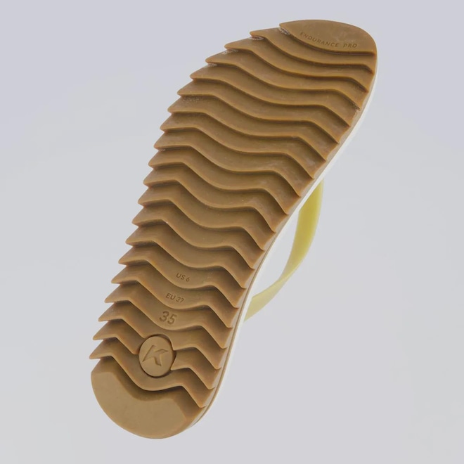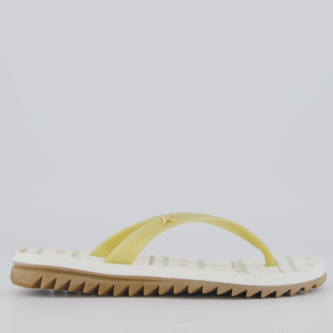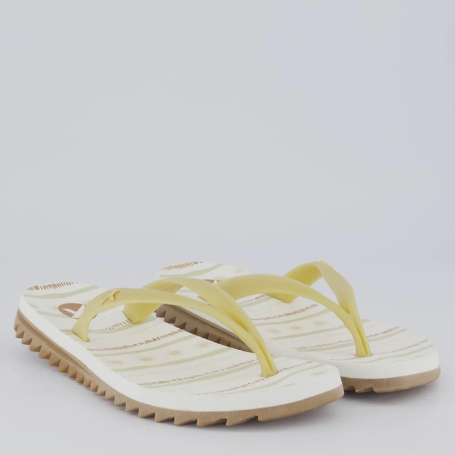 Tecnologia Endurance Pro: Solado supertratorado construido em borracha vulcanizada que promovendo mais segurança a cada passo Composição: EVA Origem: Nacional Gênero: Feminino Indicado para: Casual Cor predominante: Branco Tira: Fina e divisora de dedos Solado: Borracha tratorada e antiderrapante Composição tira: Material sintético Peso aproximado: 360g o par n° 35