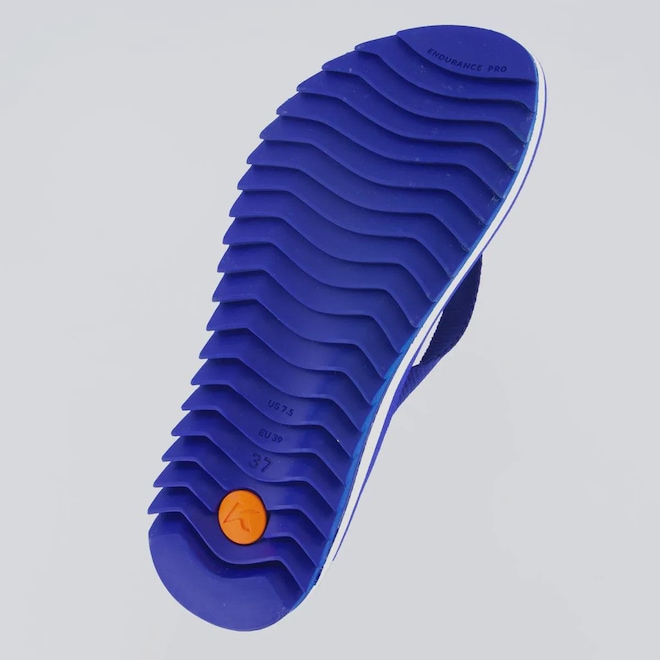 Tecnologia Endurance Pro: Solado supertratorado construido em borracha vulcanizada promovendo mais segurança a cada passo. Origem: Nacional Gênero: Feminino Composição: 100% EVA Indicado para: Casual Cor predominante: Azul Tira: Divisora de dedos Composição tira: Têxtil Solado: Borracha tratorada Peso aproximado: 420g o par n° 37