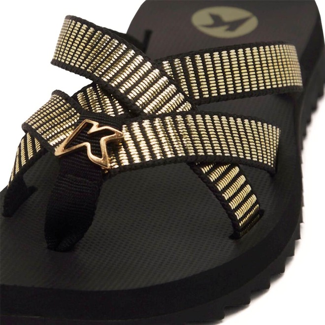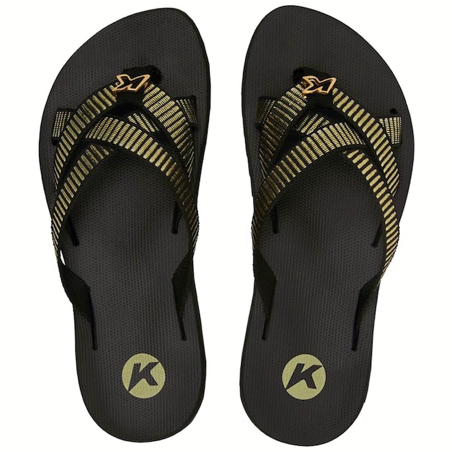 O Chinelo Kenner Kyra Spider Glam Feminino possui uma palmilha macia e super confortável juntamente com o solado de borracha vulcanizada com elevação em plataforma. O cabedal com várias tiras proporcionam segurança no seu caminho, o diferencial fica por conta dos detalhes dourados nas tiras e o pin metálico K dourado, possui solado flexível e antiderrapante.