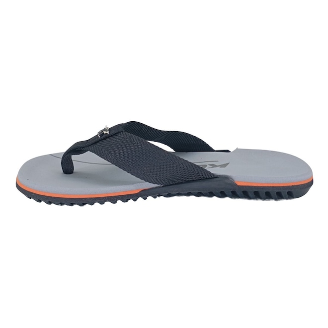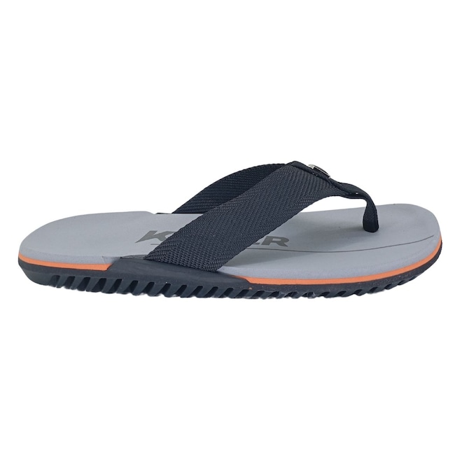 O chinelo da Kenner, o NK6, apresenta um design moderno e robusto. Ele possui uma palmilha anatômica em preto, proporcionando maior suporte aos pés com sua tecnologia SoftForm, além de uma tira larga no cabedal que repele água e é resistente com um detalhe metálico em formato de "K", característico da marca.