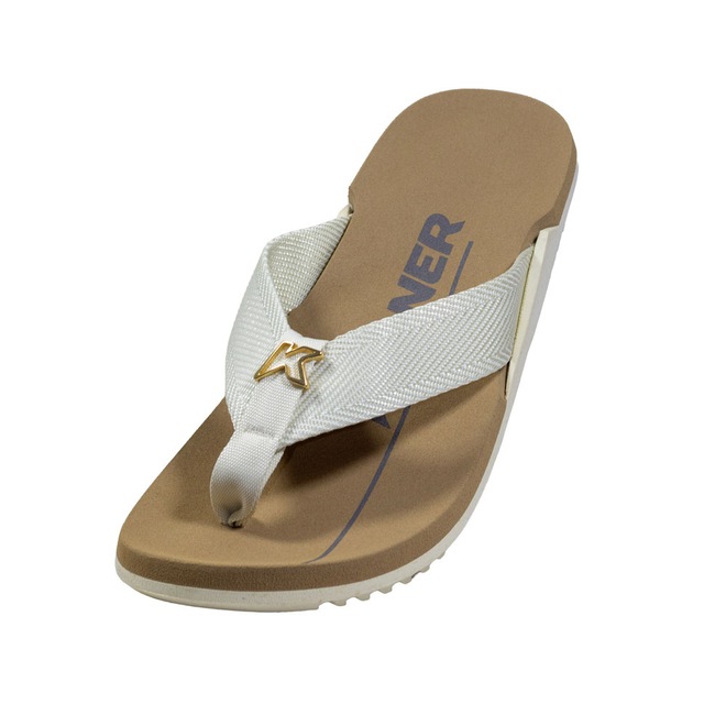 Com ranhuras mais profundas e anguladas, o solado absorve impactos com eficiência, proporcionando um caminhar muito mais macio e estável. O cabedal em nylon oferece resistência e conforto, enquanto o icônico identificador K em metal reforça a identidade premium da marca.