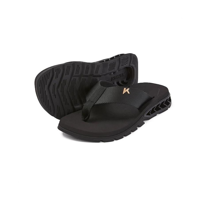 O chinelo Kenner possui tira sintética, com solado borracha.