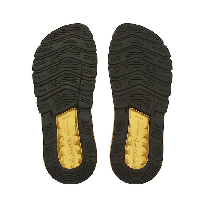 O chinelo Kenner possui tira sintética, com solado borracha.