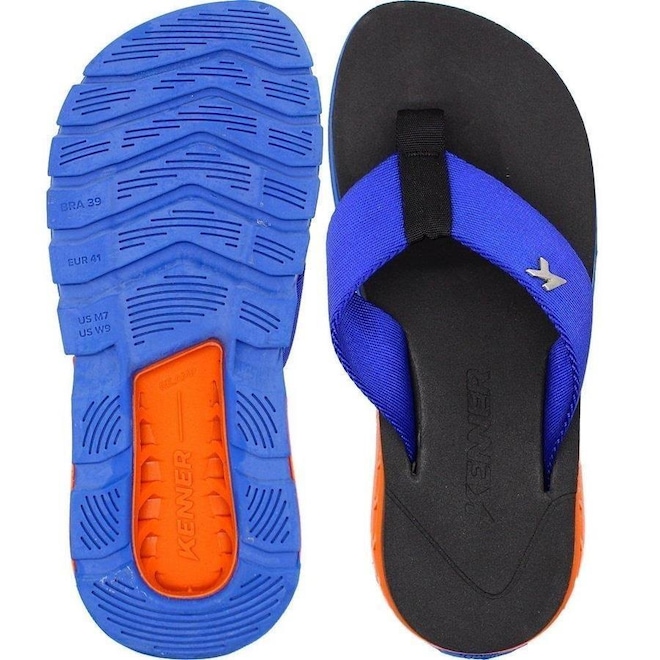 O chinelo Kenner possui tira sintética, com solado borracha.