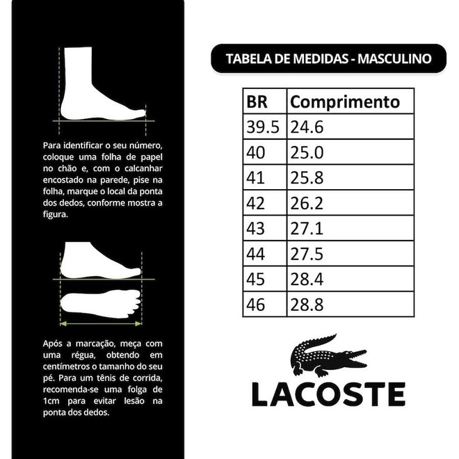 Esbanje estilo e conforto com o Chinelo Lacoste Masculino Croco Slide 119! O modelo conta um design moderno e proporciona um visual despojado para o dia a dia e também para curtir praia ou piscina. Além de macio, possui boa flexibilidade e conta com ranhuras estratégicas na entressola e no solado, parar gerar maior aderência nas passadas. Principais características do Chinelo Lacoste Masculino Croco Slide 119 Cabedal: 100% Borracha Solado: Emborrachado (100 poliuretano) Logo: Lacoste, em alto relevo na lateral Tipo de Pisada: Neutra Indicado Para: Dia a dia Tipo: Chinelo Origem: Nacional