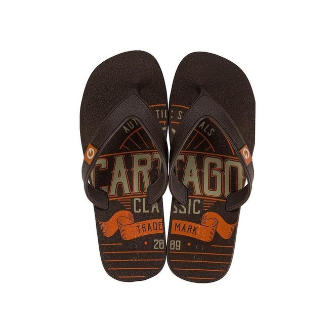 Chinelo Casual Masculino De Dedo Tiras Cartago Dakar 126425, confeccionado em PVC com tiras largas com aplique têxtil. Palmilha texturizada e solado em PVC expandido. Material: PVC Palmilha: PVC estampado Solado: PVCref: M135TZ