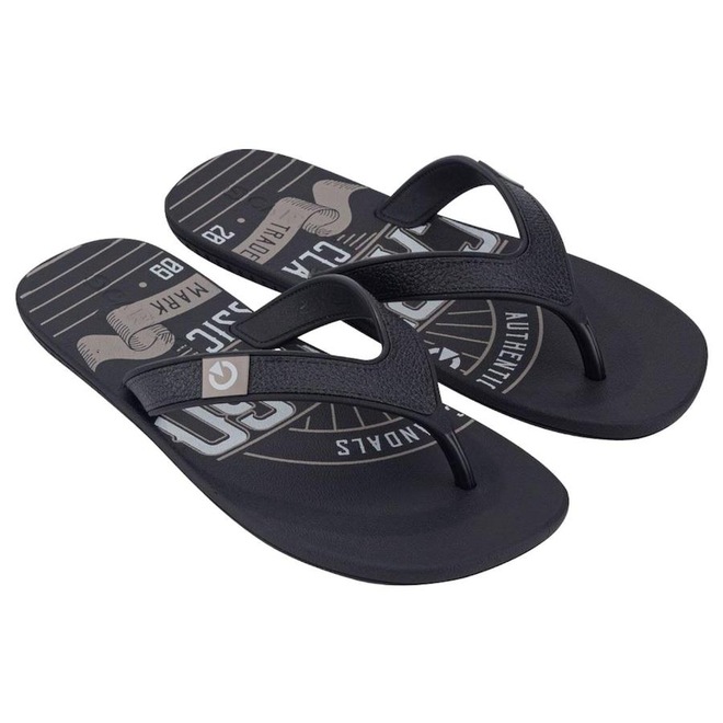 Chinelo Casual Masculino De Dedo Tiras Cartago Dakar 126425, confeccionado em PVC com tiras largas com aplique têxtil. Palmilha texturizada e solado em PVC expandido. Material: PVC Palmilha: PVC estampado Solado: PVCref: M135TZ